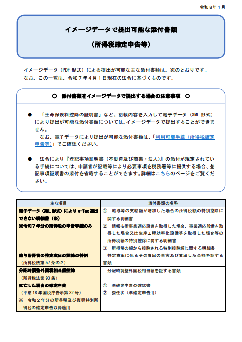 令和6年分までは普通に電子申告することができていましたし、改正後についても法人税については全く問題なく電子申告することができていたのにもかかわらず、令和7年分の所得税の申告については以下のようにイメージデータで提出する仕様となりました。
